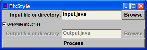 ExecutionThe program has a command-line interface - usefixstyle.Fixstyle <infile> <outfile> to run it.There's also a GUI. Here's a snapshot of it in action:
